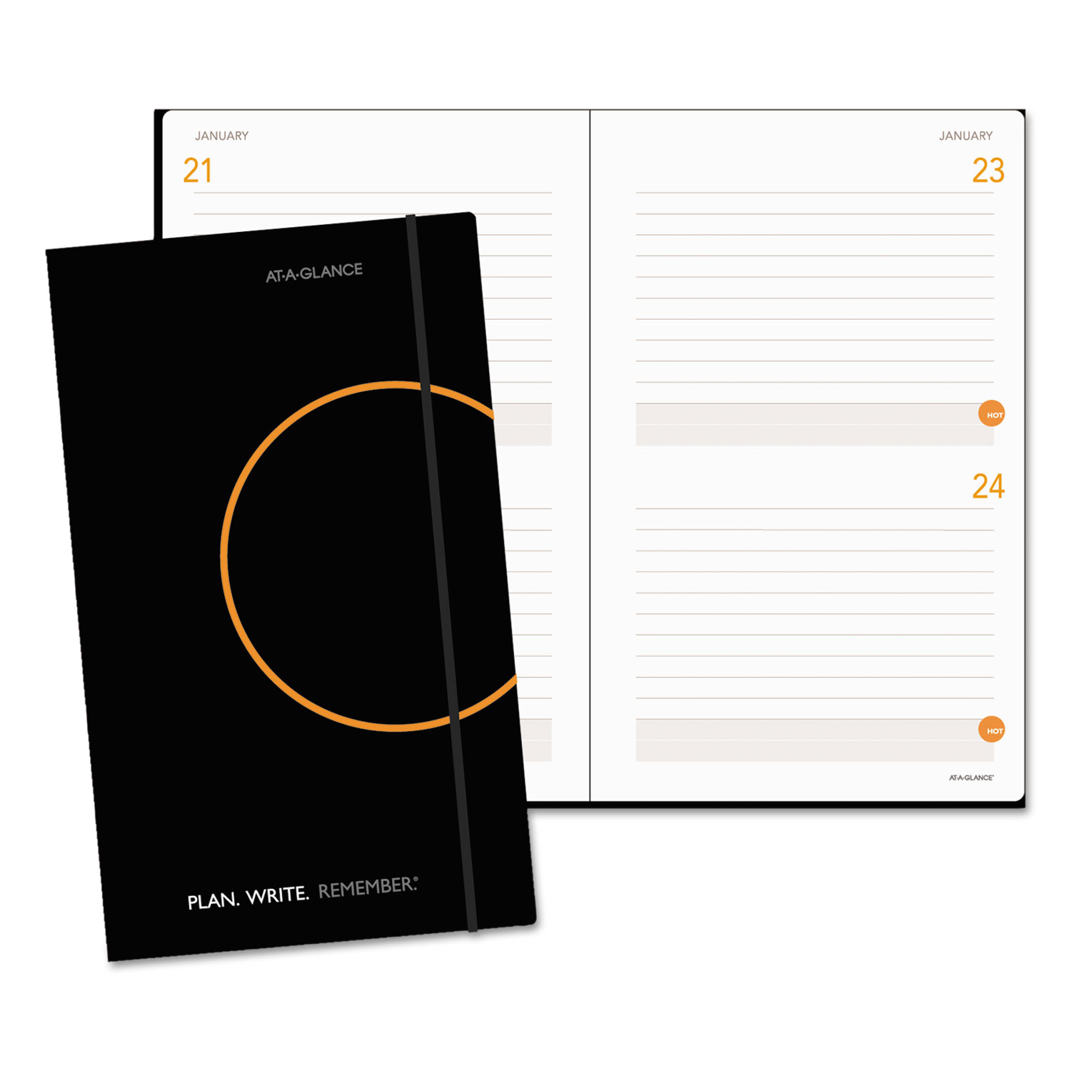 Planning and note taking all in one. Two days per page with lined planning space; works with any year. HOT Spot reminder section. Three-year reference calendar, index sheet, event planning and quick reference pages. Perfect-bound cover.
