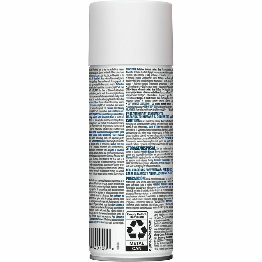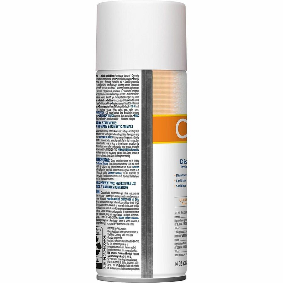 Alternate color or configuration shown Clorox Healthcare Citrace Hospital Disinfect/DeodorizerFor Multipurpose - 14 fl oz (0.4 quart) - Fresh Citrus Scent - Recommended For: Odor Remover - Disinfectant, Deodorize, Anti-bacterial - Clear - 1 EachManufacturer: The Clorox Company SKU: CLO49100Manufacturer part number: 49100Vendor: SP RichardsMSRP: $200.38Price: $7.24 Qty: Add to cart Ship toSelect countryUnited StatesAfghanistanÅland IslandsAlbaniaAlgeriaAmerican SamoaAndorraAngolaAnguillaAntarcticaAntigua and BarbudaArgentinaArmeniaArubaAustraliaAustriaAzerbaijanBahamasBahrainBangladeshBarbadosBelarusBelgiumBelizeBeninBermudaBhutanBoliviaBolivia (Plurinational State of)Bonaire, Sint Eustatius and SabaBosnia and HerzegovinaBosnia and HerzegowinaBotswanaBouvet IslandBrazilBritish Indian Ocean TerritoryBrunei DarussalamBulgariaBurkina FasoBurundiCabo VerdeCambodiaCameroonCanadaCape VerdeCayman IslandsCentral African RepublicChadChileChinaChristmas IslandCocos (Keeling) IslandsColombiaComorosCongoCongo (Democratic Republic of the)Cook IslandsCosta RicaCote D'IvoireCôte d'IvoireCroatiaCubaCuraçaoCyprusCzech RepublicCzechiaDenmarkDjiboutiDominicaDominican RepublicEast TimorEcuadorEgyptEl SalvadorEquatorial GuineaEritreaEstoniaEswatiniEthiopiaFalkland Islands (Malvinas)Faroe IslandsFijiFinlandFranceFrench GuianaFrench PolynesiaFrench Southern TerritoriesGabonGambiaGeorgiaGermanyGhanaGibraltarGreeceGreenlandGrenadaGuadeloupeGuamGuatemalaGuernseyGuineaGuinea-bissauGuyanaHaitiHeard and Mc Donald IslandsHeard Island and McDonald IslandsHoly SeeHondurasHong KongHungaryIcelandIndiaIndonesiaIran (Islamic Republic of)IraqIrelandIsle of ManIsraelItalyJamaicaJapanJerseyJordanKazakhstanKenyaKiribatiKoreaKorea (Democratic People's Republic of)Korea (Republic of)Korea, Democratic People's Republic ofKuwaitKyrgyzstanLao People's Democratic RepublicLatviaLebanonLesothoLiberiaLibyaLibyan Arab JamahiriyaLiechtensteinLithuaniaLuxembourgMacaoMacauMacedoniaMadagascarMalawiMalaysiaMaldivesMaliMaltaMarshall IslandsMartiniqueMauritaniaMauritiusMayotteMexicoMicronesiaMicronesia (Federated States of)MoldovaMoldova (Republic of)MonacoMongoliaMontenegroMontserratMoroccoMozambiqueMyanmarNamibiaNauruNepalNetherlandsNew CaledoniaNew ZealandNicaraguaNigerNigeriaNiueNorfolk IslandNorth MacedoniaNorthern Mariana IslandsNorwayOmanPakistanPalauPalestinePalestine, State ofPanamaPapua New GuineaParaguayPeruPhilippinesPitcairnPolandPortugalPuerto RicoQatarReunionRéunionRomaniaRussian FederationRwandaSaint BarthélemySaint Helena, Ascension and Tristan da CunhaSaint Kitts and NevisSaint LuciaSaint Martin (French part)Saint Pierre and MiquelonSaint Vincent and the GrenadinesSamoaSan MarinoSao Tome and PrincipeSaudi ArabiaSenegalSerbiaSeychellesSierra LeoneSingaporeSint Maarten (Dutch part)SlovakiaSlovakia (Slovak Republic)SloveniaSolomon IslandsSomaliaSouth AfricaSouth Georgia & South Sandwich IslandsSouth Georgia and the South Sandwich IslandsSouth SudanSpainSri LankaSt. HelenaSt. Pierre and MiquelonSudanSurinameSvalbard and Jan MayenSvalbard and Jan Mayen IslandsSwedenSwitzerlandSyrian Arab RepublicTaiwanTaiwan, Province of ChinaTajikistanTanzaniaTanzania, United Republic ofThailandTimor-LesteTogoTokelauTongaTrinidad and TobagoTunisiaTurkeyTurkmenistanTurks and Caicos IslandsTuvaluUgandaUkraineUnited Arab EmiratesUnited KingdomUnited Kingdom of Great Britain and Northern IrelandUnited States minor outlying islandsUruguayUzbekistanVanuatuVatican City State (Holy See)VenezuelaVenezuela (Bolivarian Republic of)Viet NamVietnamVirgin Islands (British)Virgin Islands (U.S.)Wallis and FutunaWallis and Futuna IslandsWestern SaharaYemenZambiaZimbabwe *Other *Shipping MethodNameEstimated DeliveryPriceNo shipping optionsApply Custom wishlist OKAdd to wishlistAdd to compare listEmail a friendClorox Healthcare Citrace Hospital Disinfect/Deodorizer - For Multipurpose - 14 fl oz (0.4 quart) - Fresh Citrus Scent - Recommended For: Odor Remover - Disinfectant, Deodorize, Anti-bacterial - Clear - 1 Each Disinfects hard surfaces in 5 minutesDestroys odors instead of masking themPrevent mold and mildew on fabricsLonger spray time than other aerosol spraysOverviewSpecificationsContact UsClorox Healthcare Citrace Hospital Disinfect/Deodorizer - For Multipurpose - 14 fl oz (0.4 quart) - Fresh Citrus Scent - Recommended For: Odor Remover - Disinfectant, Deodorize, Anti-bacterial - Clear - 1 Each Disinfects hard surfaces in 5 minutesDestroys odors instead of masking themPrevent mold and mildew on fabricsLonger spray time than other aerosol spraysProducts specificationsAttribute nameAttribute valueCountry of OriginUnited StatesColor FamilyClearWidth2.69"Height7.94"ScentFresh CitrusFeaturesDisinfectantEnvironmentally FriendlyYesRecycledNoBrand NameClorox HealthcareManufacturerThe Clorox CompanyManufacturer Part Number49100Manufacturer Website Addresshttp://www.thecloroxcompany.comMarketing InformationHealthcare Citrace Hospital Disinfectant and Deodorizer kills microorganisms on soft surfaces, hard surfaces and more. It kills 99.9 percent of bacteria on soft surfaces in just 30 seconds. To help prevent the spread of pathogens that can contribute to healthcare-associated infections, regularly spray this disinfectant on fabric or upholstered surfaces including privacy curtains, upholstered furniture, cushions, lab coats and linens. EPA-registered disinfectant kills 24 microorganisms on hard surfaces in 5 minutes. Simply spray and let air dry on equipment such as light switches, telephone receivers, remote controls, wheelchairs, empty wastebaskets, supply carts and bathroom basins. With a fresh citrus scent, Citrace eliminates odors from the air instantly by killing the bacteria that causes them. Its light citrus scent disappears rapidly to leave areas smelling fresh and clean It is intended for use in commercial settings.Packaged Quantity1 EachApplication/UsageMultipurposeWeight (Approximate)1.14 lbCleaner Volume14 fl oz (0.4 quart)Recommended UseOdor Remover
