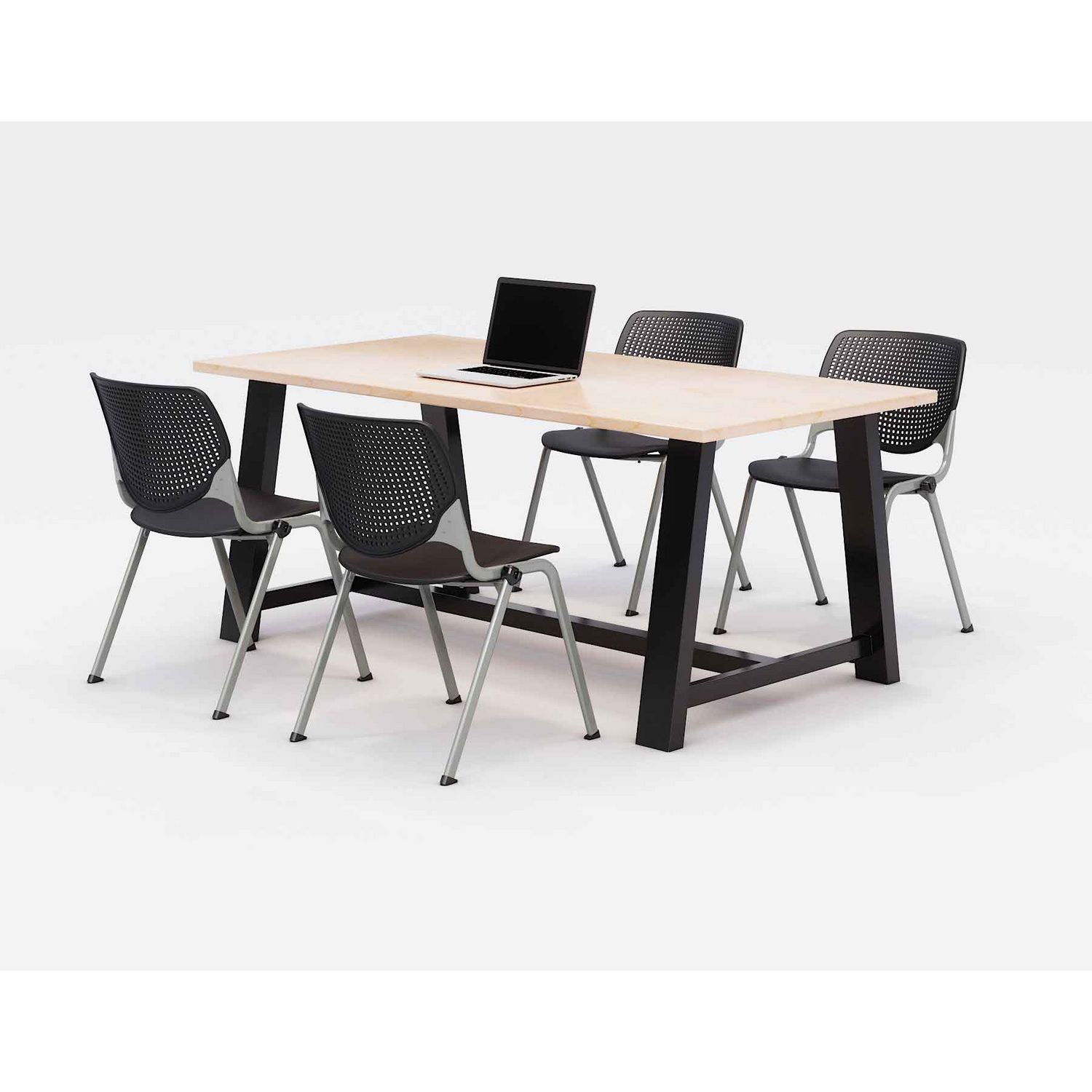 Get the industrial vintage look with these classic dining table sets. They are ideal for meetings, collaborative areas, cafeterias or any touchdown area. The table frame has 4" x 2" thick steel legs with cross-beams for a distinct look and unmatched durability. The top is made of 1.25" thick high-pressure laminate with a matching 3mm PVC edge. It's resistant to stains and spills and is easy to maintain and clean. The included chairs have an easy to clean polypropylene seat and back. The ergonomic perforated back allows for enhanced circulation, while the radius conforms to your back for maximum comfort. The chairs offer contoured extra wide seat pan and a 400-lb weight capacity to provide comfort and accommodate all sizes. Tables shipped unassembled. Top Color: Kensington Maple; Color Family: Maple; Base Color: Black; Top Shape: Rectangular.