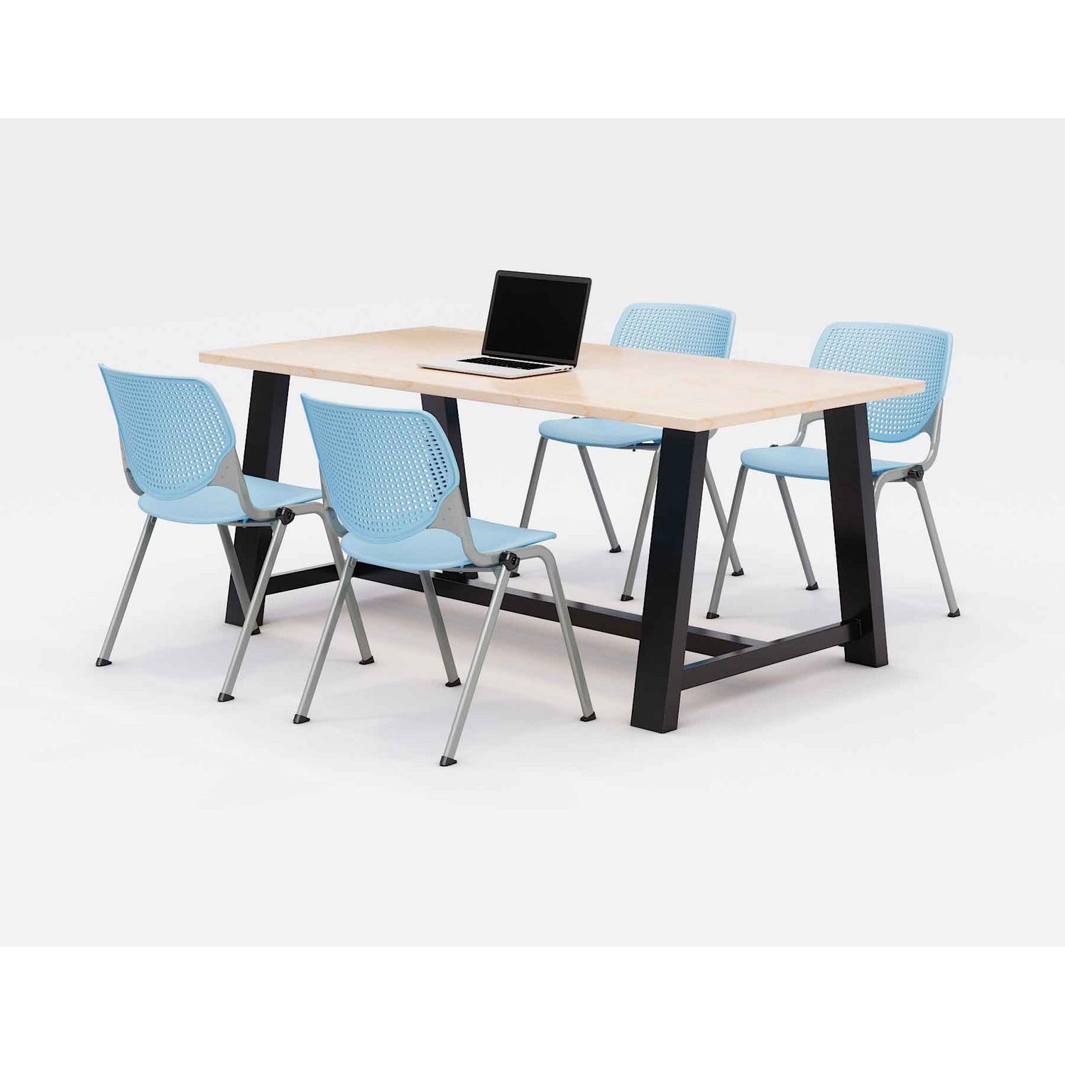 Get the industrial vintage look with these classic dining table sets. They are ideal for meetings, collaborative areas, cafeterias or any touchdown area. The table frame has 4" x 2" thick steel legs with cross-beams for a distinct look and unmatched durability. The top is made of 1.25" thick high-pressure laminate with a matching 3mm PVC edge. It's resistant to stains and spills and is easy to maintain and clean. The included chairs have an easy to clean polypropylene seat and back. The ergonomic perforated back allows for enhanced circulation, while the radius conforms to your back for maximum comfort. The chairs offer contoured extra wide seat pan and a 400-lb weight capacity to provide comfort and accommodate all sizes. Tables shipped unassembled. Top Color: Kensington Maple; Color Family: Maple; Base Color: Black; Top Shape: Rectangular.