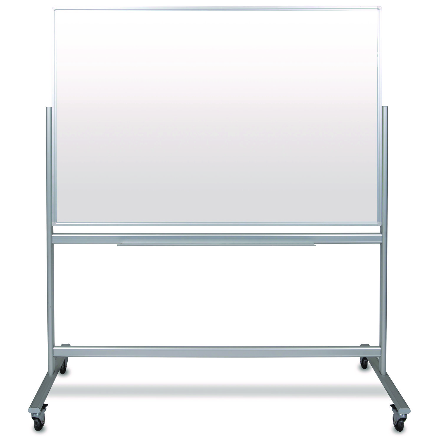 Luxor mobile magnetic glass whiteboards double the writing space and are designed to move easily from location to location making them perfect for collaborative workspaces. The durable aluminum frame and wide base create stability while the super-clear glass offers a bright white surface that is optimal for wet/dry erase markers. This double-sided magnetic glass board presents a contemporary look that complements any office, conference room, training center or classroom, while the 3" rollerblade-style casters with non-marking treads guarantee smooth mobility. Luxor magnetic glass dry-erase boards are easy to assemble and are packaged with supportive materials that are highly resistant to damage during shipping. Board Surface Type(s): Dry Erase; Magnetic Board Surface: Yes; Surface Use Rating: Heavy/Frequent Use; Surface Material: Glass.