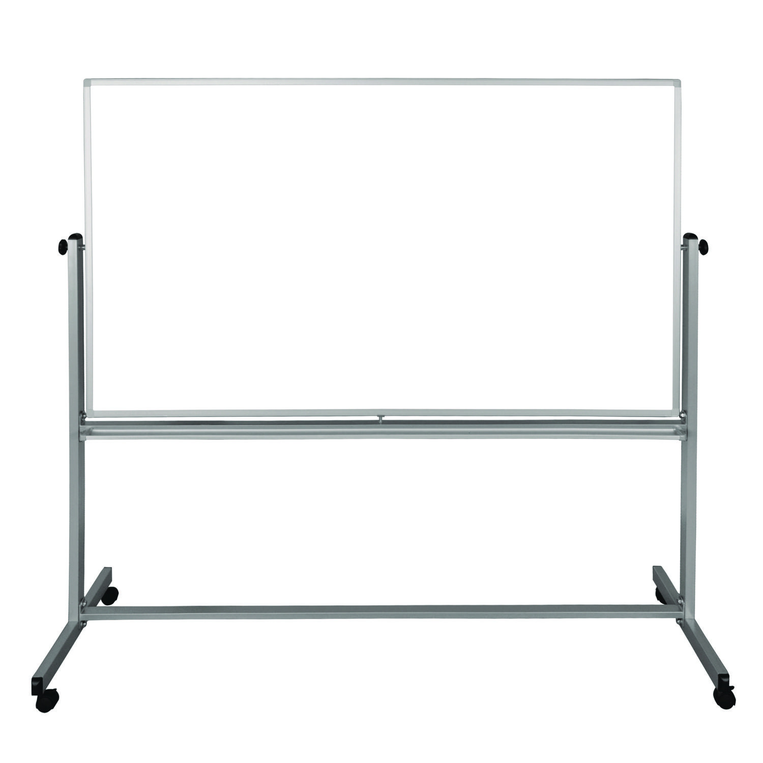 Built for brainstorming, teaching or organizing ideas and information, this Luxor mobile magnetic dry erase board doubles the writing space and delivers the durable mobility needed for dynamic workspaces. A slender-yet-sturdy frame provides a professional appearance and rolling casters make it easy move around a room. To flip the board, simply loosen the side knobs and disengage the spring-loaded locking clip. Need to display charts, papers or photos? Use the magnetic surface as a bulletin board. Look no further for a high-quality, affordable mobile marker board. Board Surface Type(s): Dry Erase; Magnetic Board Surface: Yes; Surface Use Rating: Heavy/Frequent Use; Surface Material: Painted Steel.