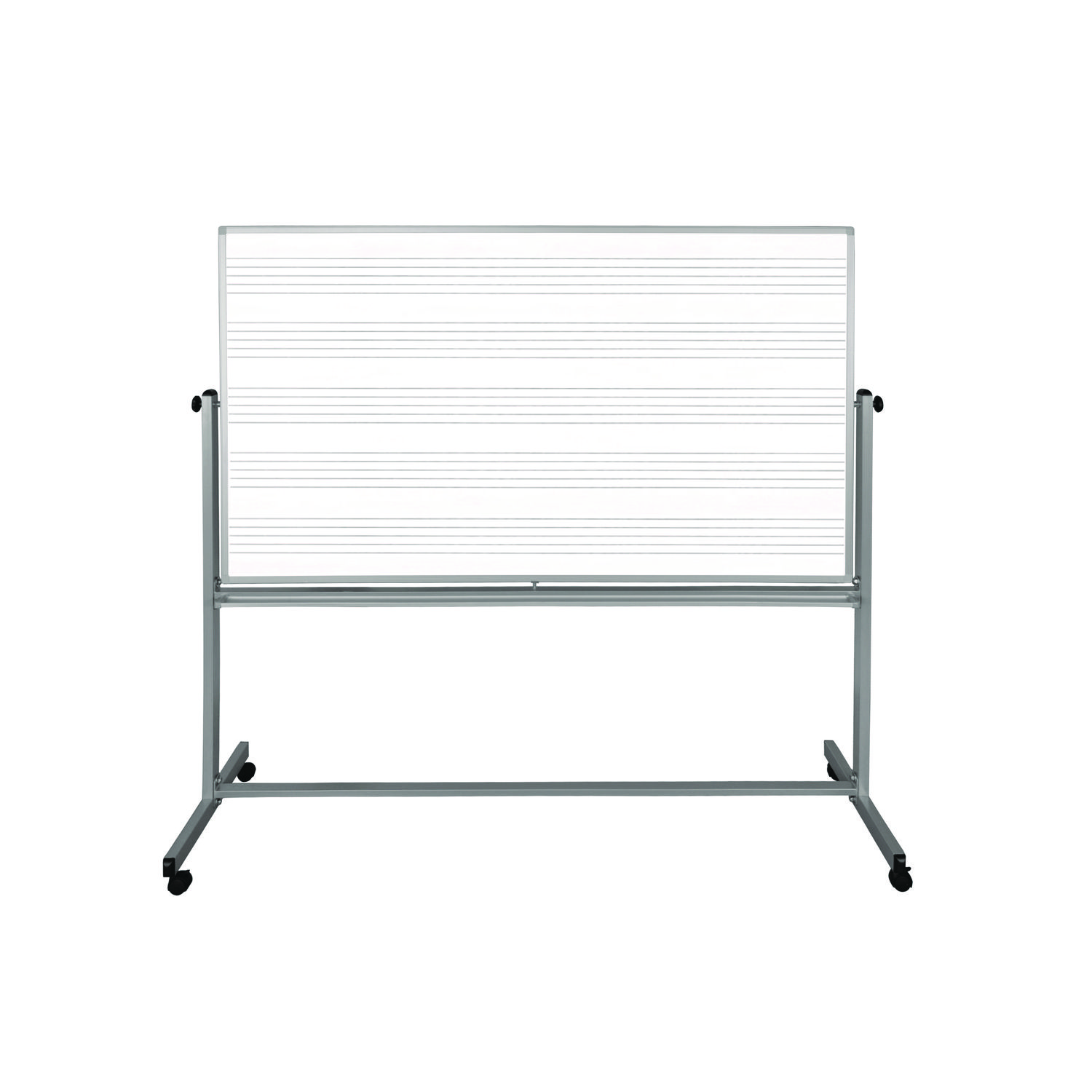 Avoid the hassle of drawing or taping staff lines with the Luxor Mobile Double Sided Music Whiteboard. Both sides feature five permanent rows of UV-resistant staff lines across the full six-foot-width of the surface, providing ten overall sets of staff lines to illustrate melodies. Simply loosen the side knobs and spring-loaded locking clip to flip the board or students can us both sides simultaneously. Staff line spacing allows for single or dual-clef notation. Both sides are also magnetic for displaying sheet music, announcements and more, and four casters make rolling the whiteboard around the room a breeze. Save more time and make more music with this mobile music dry erase board. Board Surface Type(s): Dry Erase; Magnetic Board Surface: Yes; Surface Use Rating: Heavy/Frequent Use; Surface Material: Painted Steel.