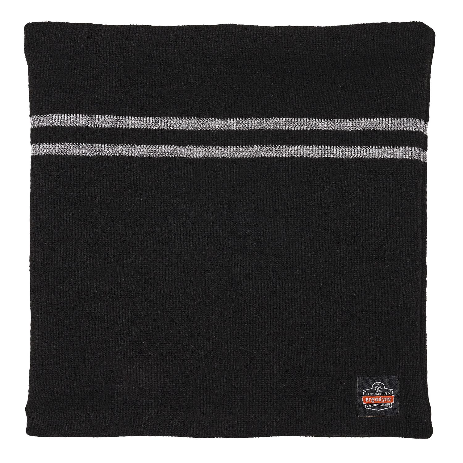 The N-Ferno 6961 Winter Neck Gaiter with reflective accents provides warm, no-bulk protection from demanding winter conditions while also enhancing visibility in low-light environments. The 100% stretchable acrylic shell with a soft liner makes for a snug, cozy fit that keeps cold out. Low-profile for wear alone or under hard hats. Unique to this neck warmer are two 360° reflective stripes to keep wearers safe and seen. Strategically placed close to one another, the stripes enhance reflectivity at all angles and create a larger overglow effect when they come into contact with light. They are sewn directly into the gaiter to reduce tears and rips when being stretched or worn. A soft interior makes for a comfortable, cozy fit. This versatile neck warmer can be worn around the neck or pulled over the mouth, nose and ears. One size fits most, this neck gaiter is ideal for those working in low-light environments or at night in construction, transportation or weekend activities. Apparel Type: Neck Gaiter; Material(s): Acrylic; Color(s): Black; Color Family: Black.
