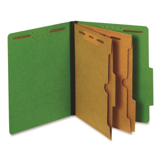 The perfect project file, Pendaflex® Pressboard Classification Folders with Full-Pocket Dividers are ideal for managing complex, subdivided files that contain important documents, forms, photos, drawings and supplemental materials that should not or cannot be punched. Each pocket divider is enclosed on three sides to keep its contents secure, and a thumb-cut notch on the pocket's front face helps make retrieve easy. To accommodate traditional subdivisions, two-prong fasteners are embedded on each pocket's front and back faces, and additional two-prong fasteners are embedded on the front and back covers' interior faces. Heavyweight pressboard covers and a gusseted, accordion-style spine provide the durability required for frequently referenced files. Folder Size: Letter; Total Number of Dividers: 2; Total Number of Fasteners: 6; Max Folder Expansion: 2.5".