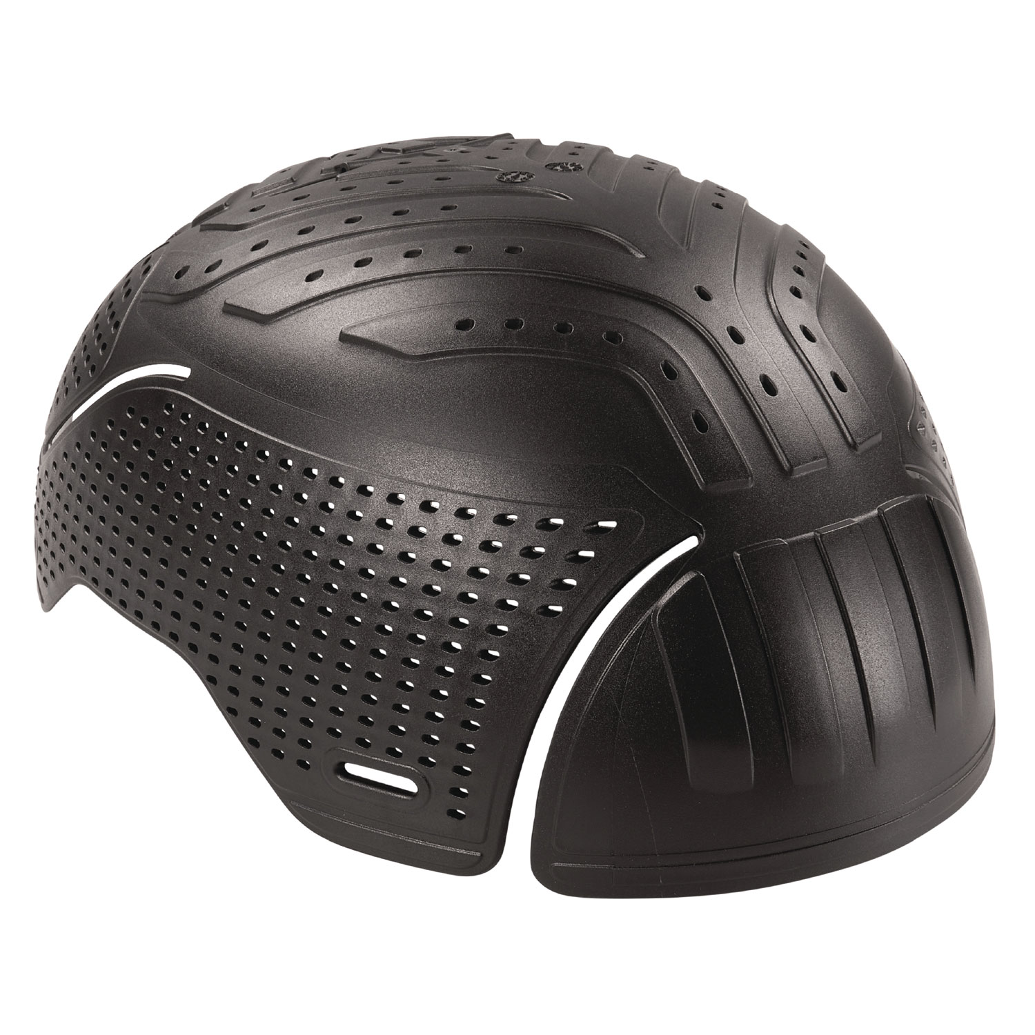 The Skullerz 8943F(x) Universal Bump Cap Insert with flexible hinged wings delivers impact protection and an enhanced fit for larger head sizes and hairstyles. This lightweight, breathable and trimmable impact-resistant insert easily fits into any baseball cap, hat or other headwear for protection against bumps, scrapes, bruises and other minor head injuries. This bump cap is specifically designed to form to and protect varying head sizes and hairstyles, such as dreadlocks or larger natural hairstyles. The front and rear wings flex in and out, while the hinged design in the back allows hair to escape and lay flat, offering a non-bulky fit. With flexible sides and convenient trim-to-fit customization, this bump cap insert easily fits a variety of hats/caps and head shapes. The shell is made of lightweight, durable polyethylene with a ribbed top for enhanced crown impact protection. Hard Hat Style: Flexible Hinged Bump Cap; Material(s): Polyethylene; Thickness: 5 mm; Color(s): Charcoal.