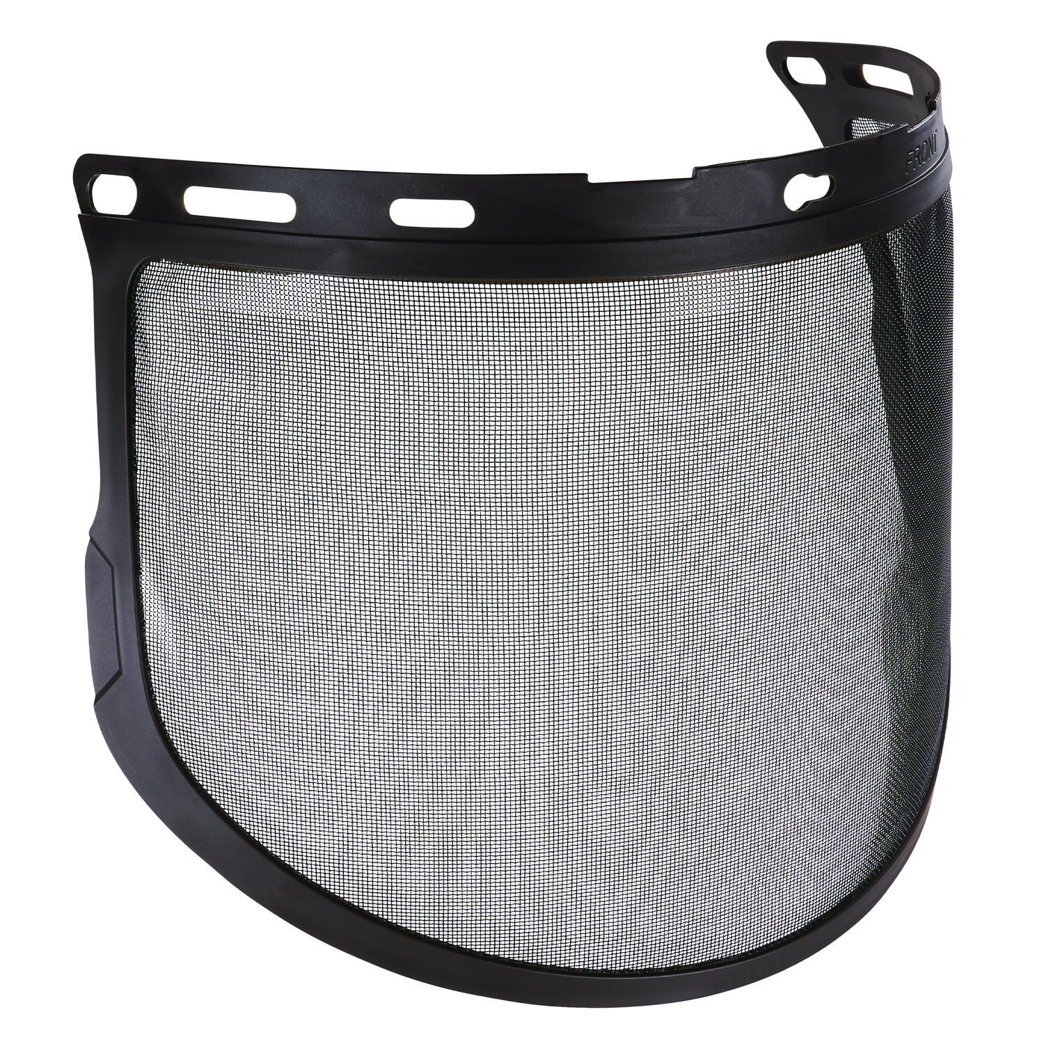The Skullerz 8999 Mesh Face Shield Replacement is designed to securely attach to Skullerz 8996 Face Shield Adapter Frame or as a replacement shield for the 8989 Hard Hat Mesh Face Shield. This metal mesh face shield protects against flying debris while also permitting airflow for increased comfort and easily installs with the face shield adapter (sold separately). Safety Headgear Accessory Type: Face Shield; Material(s): Steel Mesh; Color(s): Black; Color Family: Black.
