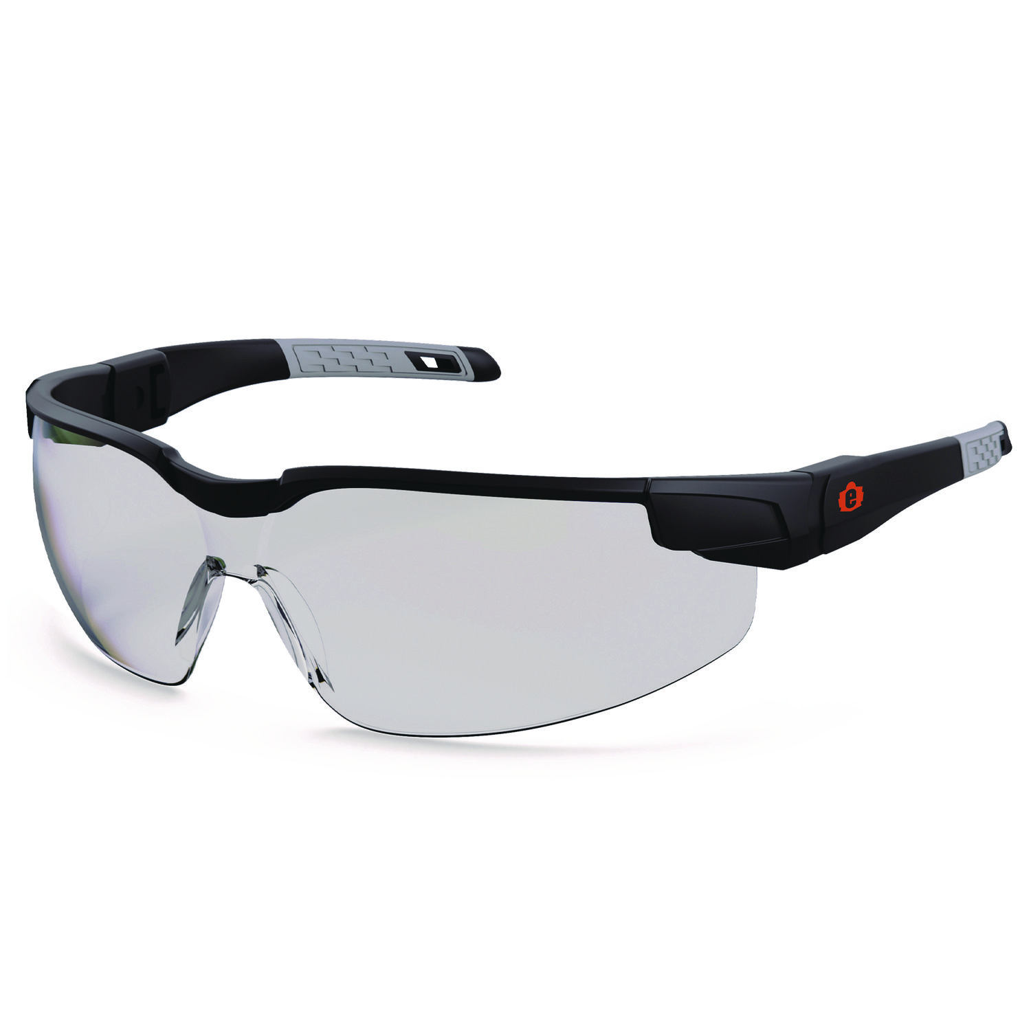 Skullerz DELLENGER Safety Glasses feature adjustable temples that shift up or down and lock into place for a custom fit on a variety of face sizes. These safety glasses feature polycarbonate lenses to protect against impacts and filter 99.9 percent of harmful UVA, UVB and UVC rays. The rimless design makes for a lightweight and comfortable fit and provides a full field of vision. The integrated, contoured nose bridge won't slip or pinch and the flex-fit temples reduce pressure and provide stay-put all-day comfort. These UV protection glasses are great for protecting your eyes during indoor and outdoor work like construction, carpentry/woodworking, demolition or landscaping. Also great for outdoor hobbies like boating, skiing and fishing. Safety Glasses Style: Half-Frame Wraparound; Frame Color: Matte Black; Frame Material: Nylon Impact; Lens Material: Polycarbonate.